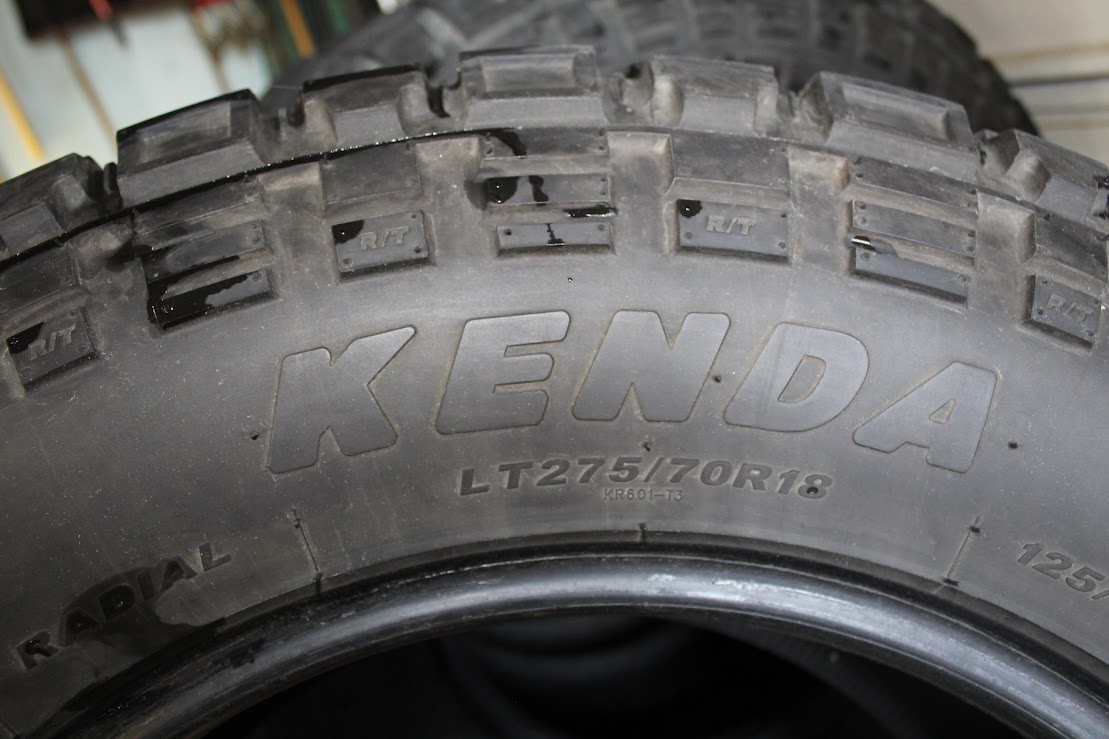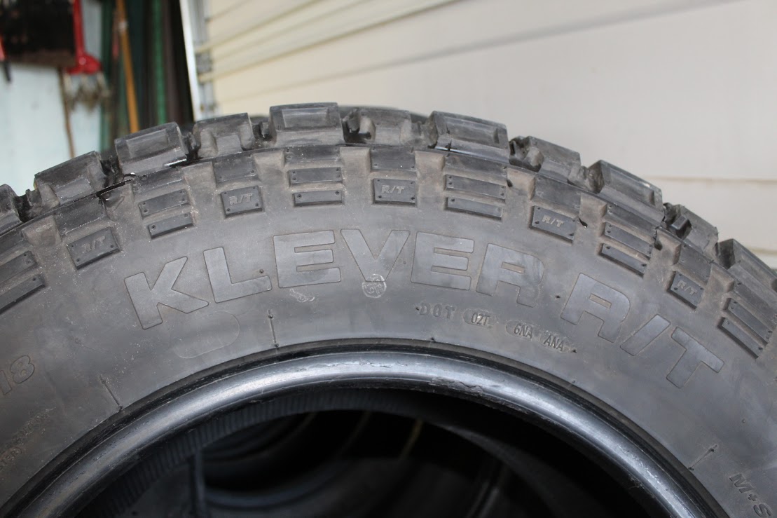 Kenda Klever R/T 275/70R18. These tires have a triple threat sidewall and are 10 ply. Two of the tires are in decent shape with 8/32 tread. One has some cupping and 8/32 tread. One has cupping and uneven wear. These tires cost $275 a piece new. That is $1100 for 4 tires.