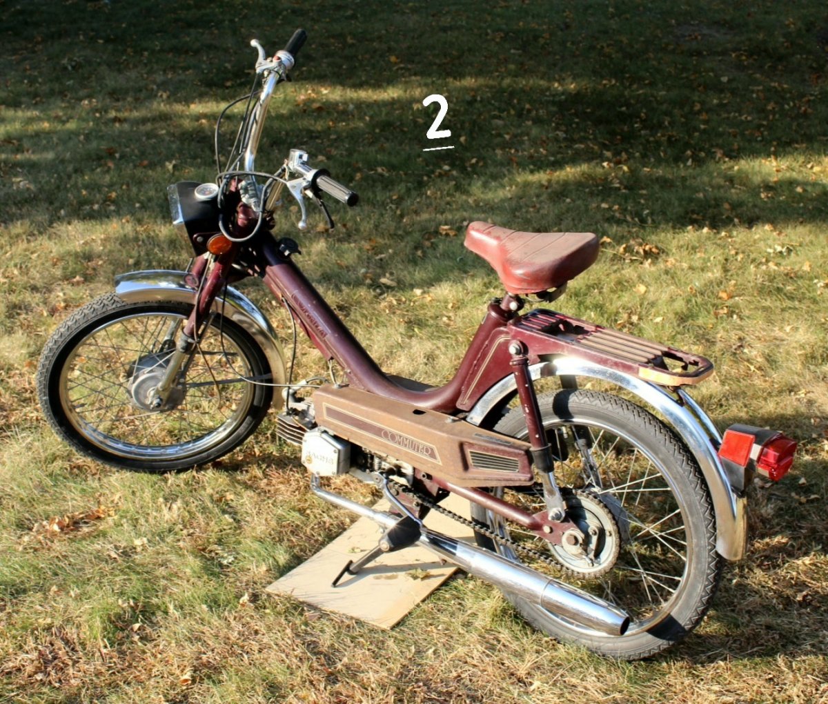 Twin Columbia Commuter mopeds. These both run good. They are mostly original. I have been riding the one regularly. One of them has new brake shoes in the front and rear.